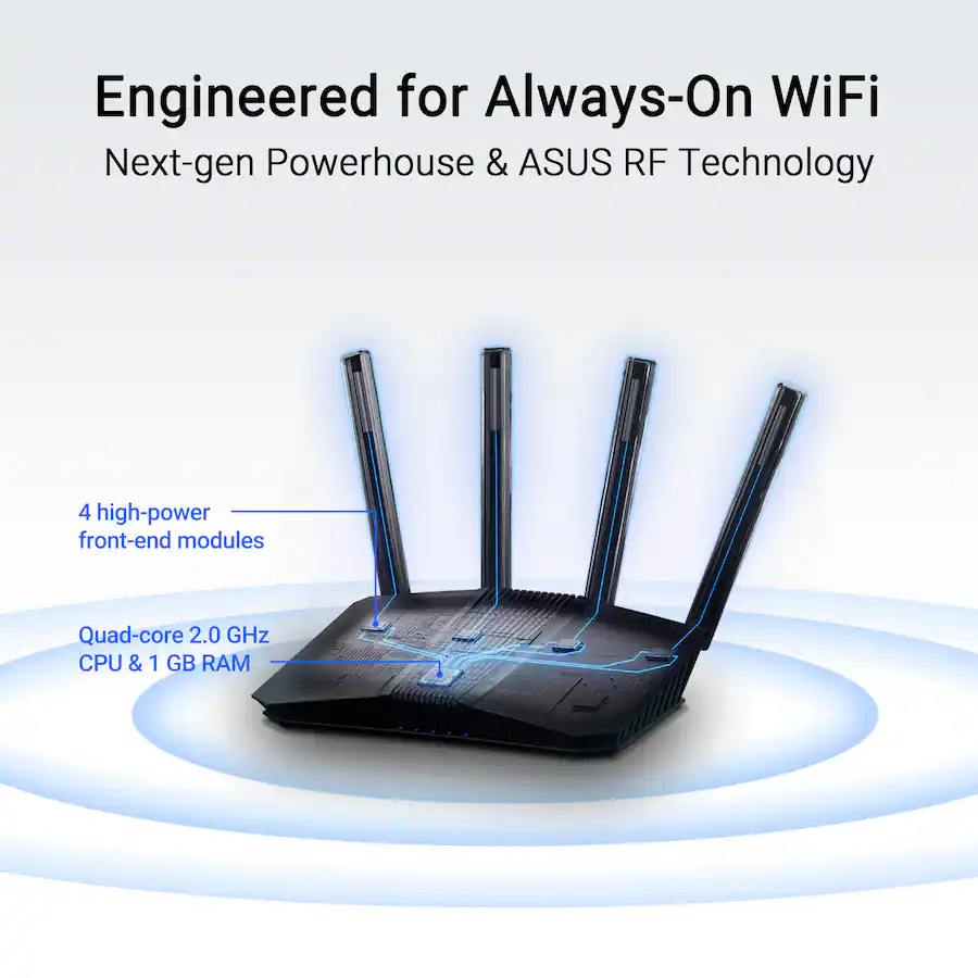 • Easy Mobile Management: Set up and manage your network effortlessly with the intuitive ASUS Router App, allowing you to control everything from your phone.