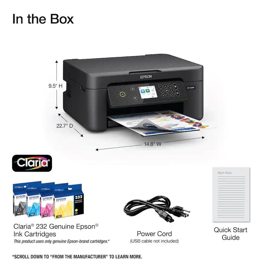 Print, Scan, and Copy with Ease using the Epson Expression Home XP-4200 All-in-One Inkjet Printer.